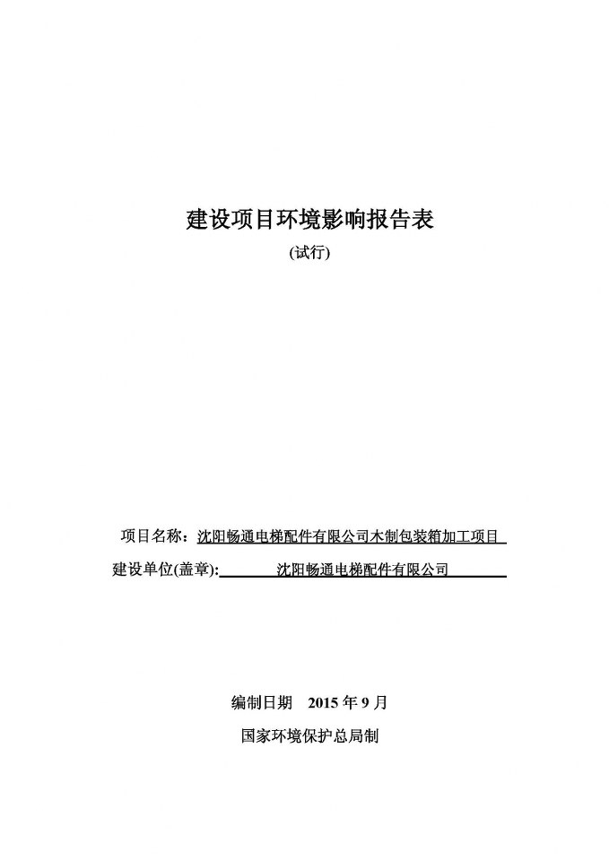 沈陽(yáng)暢通電梯配件有限公司木制包裝箱加工項(xiàng)目