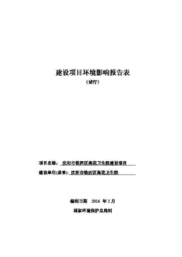 沈陽市鐵西區高花衛生院建設項目環評報告表全